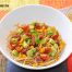 Pon a calentar una sartén grande con un poco de aceite y saltea los espaguetis de calabacín y zanahoria con el ajo, sólo necesitan un minuto y medio o dos, hazlos a fuego fuerte para que no se ablanden. Retira y sirve los tallarines en cada bol, cubriendo la base y un lado del bol.