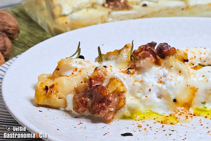 Los espárragos blancos son un clásico en nuestra despensa de conservas, son tan maravillosos que no necesitan más que escurrirse y servirse en un plato solos o con una salsa como la mahonesa. No hace falta más para disfrutarlos, pero nos parece que debemos aprovechar más sus virtudes para hacer platos más elaborados como estos Espárragos blancos con queso gorgonzola y nueces.
