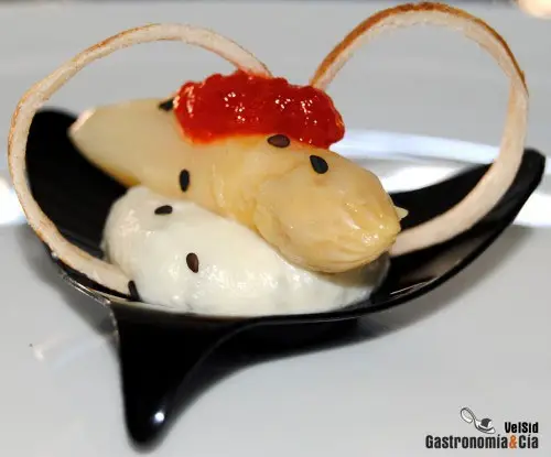 Es tan fácil como tener los ingredientes a mano y disponerse a deleitar a nuestros comensales con un bocado cremoso, lleno de sabor, con sutileza de dulces, salados, ácidos… Este bocado que definimos por sus ingredientes, Espárragos, gorgonzola y pimiento, puede formar parte de un menú degustación que queráis elaborar cualquier día en casa. Probadlo y nos contáis.