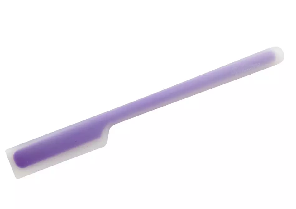 Es la espátula para mezclar de Wilton, diseñada con el objetivo de facilitar hacer la mezcla para glaseado en la botella de la misma marca, aunque también se podrá utilizar con otros botes similares, y no necesariamente que contengan los ingredientes para hacer glaseados, el contenido de los biberones de cocina que tanto se utilizan hoy en día, será mejor aprovechado gracias a esta espátula que además de mezclar, puede ayudar a apurar o rebañar.