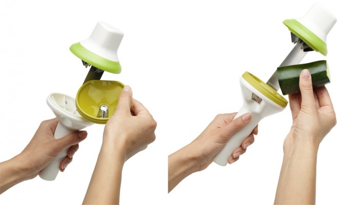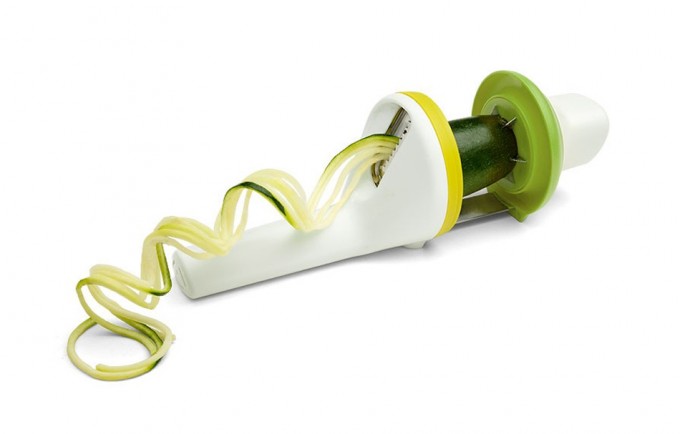 Pues bien, no podemos decir cuál es el mejor espiralizador porque sólo hemos probado el que tenemos nosotros, que es este de Microplane, un utensilio pequeño y manejable que hace buenos ‘espaguetis’ pero deja el corazón entero, cosa que no sucede con este parece ser… Así que en lugar de ayudaros a elegir, lo que podemos es proporcionaros otra opción más (ya sabemos que cuanto más hay para elegir, más difícil es decidir), se trata del nuevo modelo de la firma Chef’n, y es el que podéis ver en la foto que ilustra estas líneas.