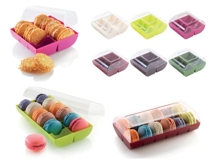 Hay dos modelos de estuches Pret-à-biscuits, uno con seis cavidades y ogro con doce cavidades, aunque esto no implica que ese sea el número de galletas que cada estuche puede contener, pues depende principalmente de su grosor. Además de los dos modelos, cada uno está disponible en seis colores, crema, verde claro, fucsia, rojo, marrón y verde oscuro.