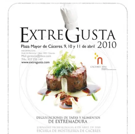 Este evento da comienzo el jueves día 8 de abril con unas jornadas profesionales en la Escuela de Hostelería de Cáceres. Pero para todos los públicos, será el fin de semana de deleite gastronómico en una feria en la que se podrán degustar hasta 132 tapas elaboradas con productos de Extremadura con sus vinos. Viendo el tríptico o la carta de degustaciones de Extregusta 2010, vemos que la Torta del Casar es uno de los ingredientes estrella, además de las carnes ibéricas entre otras cosas.