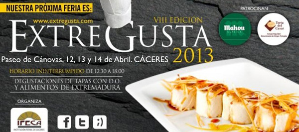 El Paseo de Cánovas de Cáceres se está preparando para acoger la octava edición del evento gastronómico ExtreGusta 2013, la feria de Degustaciones de tapas con D.O. y Alimentos de Extremadura se va a celebrar del 12 al 14 de abril. Quizá quienes esperabais este evento para finales de marzo pensabais que no se iba a celebrar, pero al parecer, cambiaron las fechas en previsión de las lluvias que podrían impedir el buen desarrollo de los actos y disfrute de los asistentes.