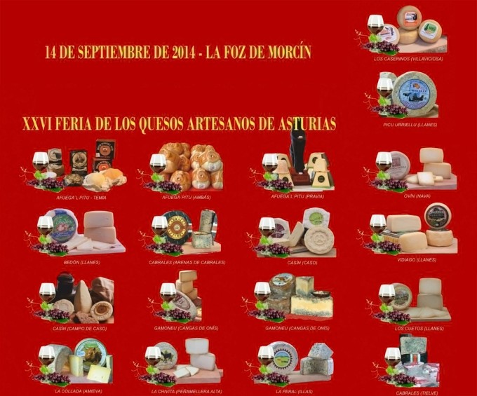 Empecemos viendo qué quesos se podrán degustar y comprar en la Feria de los Quesos Artesanos de Asturias 2014, durante toda la jornada, mañana y tarde, del domingo 14 de septiembre: