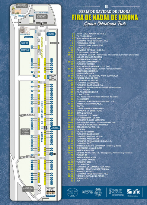 Aunque haya quien no la conozca, es fácil deducir que en esta Feria de Navidad que se celebra en la cuna del turrón, se podrán conocer y comprar todo tipo de turrones y dulces navideños, tanto los tradicionales como las nuevas creaciones que anualmente se presentan. La Feria de Navidad de Jijona 2016 contará de nuevo con cerca de un centenar de expositores que se instalarán en la Avenida Constitución, La Plaça, y será la próxima semana, los días 8, 9, 10 y 11 de diciembre.