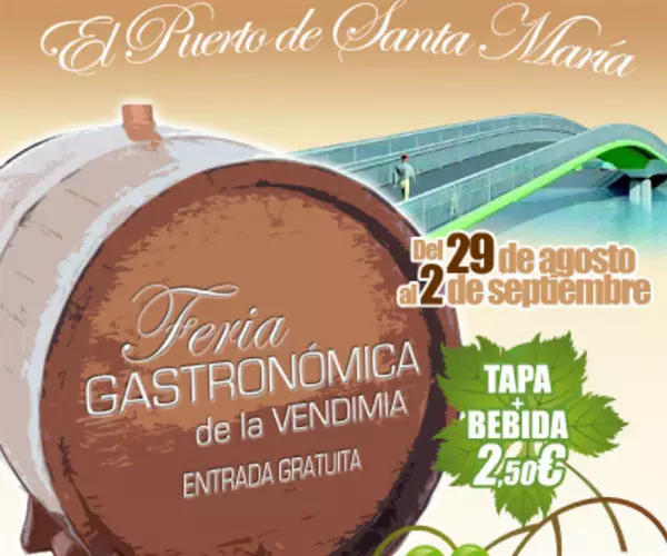 El Puerto de Santamaría terminará el mes de agosto con un nuevo evento, se trata de la Feria Gastronómica de la Vendimia que dará comienzo el próximo 29 de agosto y que se extenderá hasta el domingo 2 de septiembre de 2012. Los objetivos de esta feria es promocionar la gastronomía de El Puerto, ofrecer un acto festivo a los turistas y promocionar la cultura de la tapa a través de las creaciones tradicionales e innovadoras de los profesionales del sector hostelero.