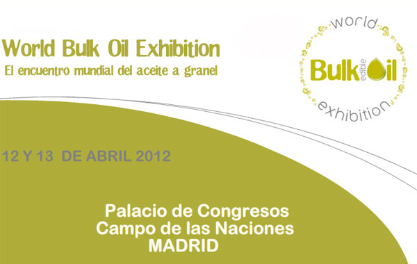 El próximo mes abril, concretamente los días 12 y 13, tendrá lugar en el Palacio de Congresos de Madrid la World Bulk Oil Exhibition, la Feria Mundial del Aceite a Granel, evento de carácter muy similar al de la Feria Mundial del Vino a Granel. Esta feria tiene como objetivo ser un punto de encuentro entre los productores que pretenden abrir nuevos mercados y los profesionales que operan en ese segmento, compradores, agentes comerciales, corredores de aceite, etc. Se espera que acudan los principales compradores de aceite de oliva a granel de todo el mundo, para ello los organizadores se han encargado de localizar y captar a los grandes operadores que trabajan en diferentes países de los cinco continentes.