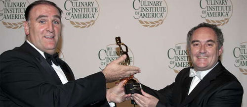 Ya se ha nombrado a Ferrán Adrià Chef del Año, o lo que es igual, ha recibido el premio Augie de la mano del chef José Andrés en la gala celebrada en la ciudad de Manhattan (Nueva York). Recordemos que los premios Augie son otorgados por la CIA (The Culinary Institute of America), una entidad sin ánimo de lucro que promueve y ensalza la gastronomía en Estados Unidos y en el resto del mundo.
