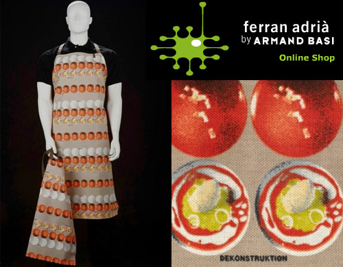A través de la página web oficial podéis acceder a las nuevas creaciones, como ejemplo de los nuevos diseños os mostramos a continuación el juego de delantales que alude a la sferificación.