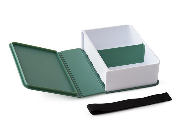 Para cerrarla cuenta con una correa elástica, inspiración de las cajas bento japonesas. La parte negativa de esta fiambrera o táper no se puede introducir en el microondas ni se recomienda lavarla en el lavavajillas. Además, hay que destacar que no es una fiambrera hermética, por lo que no es adecuada para alimentos líquidos o con salsas y demás, sólo para alimentos sólidos.