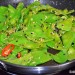 Pon una sartén grande a calentar con el aceite de oliva virgen extra, y rehoga el jengibre y el ajo rallados sin dejar de remover hasta que empiecen a adquirir color. Incorpora la guindilla y dale un par de vueltas más, seguidamente añade los tirabeques y las semillas de sésamo. Saltea unos tres o cuatro minutos y moja con el vinagre de arroz y las dos salsas de soja, añade también sal al gusto.
