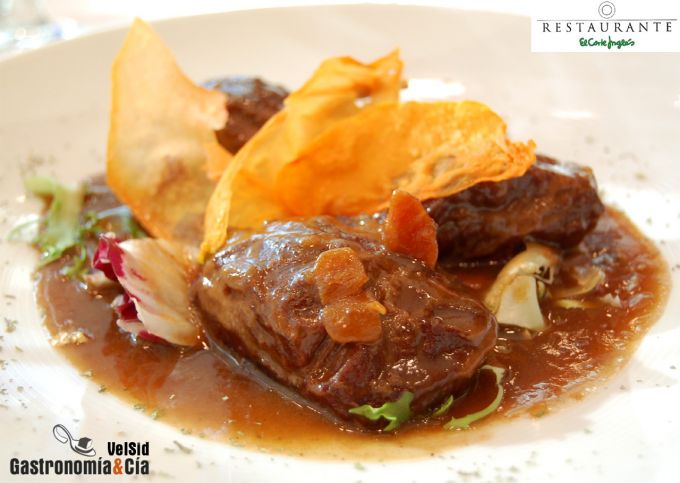El menú degustación ofrece dos platos principales para disfrutar, el Rabo de toro a la cordobesa o el Solomillo de res aromatizada con aceite de tomillo y quiebro de queso de oveja. Nosotros nos decantamos por la primera opción, cuya elaboración también degustamos con unas carrilleras. Un guiso delicioso del que no quedó rastro en el plato, una cocción de la carne que la condujo a una melosidad inolvidable. Durante las jornadas volveremos para probar el Solomillo de res que también suena muy tentador.