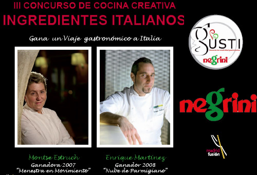 Ya conocemos quiénes son los finalistas del III Concurso de Cocina Creativa Gusti Negrini que se celebrará en el marco de Madrid Fusión 2009 el 21 del presente mes en la Sala Polivalente. Recordemos que el Concurso de Cocina Creativa Gusti Negrini, es un certamen organizado por la distribuidora de productos italianos Negrini.