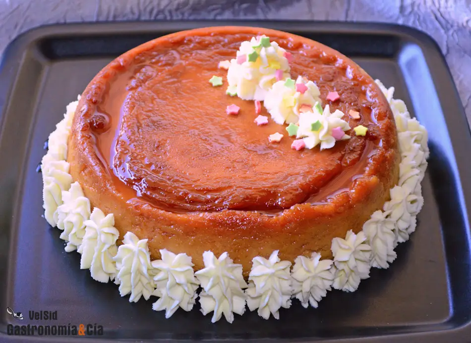 Antes de servir el flan se tendrá que desmoldar, hazlo en un plato o bandeja redonda. Puedes decorarlo con un poco de nata montada, unos barquillos, unas virutas de chocolate… Corta porciones de flan de turrón para servir a los comensales, que no dudarán en preguntar si pueden repetir. ¡Buen provecho!