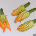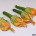 Prepara los calabacines con su flor, afila un poco la parte del pedúnculo que está más dura, y abre cuidadosamente las flores para proceder a rellenarlas después.