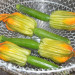 Pon una olla con agua a calentar y un cesto para cocinar al vapor las flores de calabacín rellenas, recuerda que éstas no deberán tocar el agua. No les añadas sal, sólo aderézalas con unas gotas de aceite de oliva virgen extra.