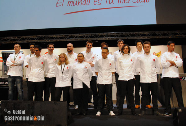 Sobre estas líneas podéis ver a los 15 jóvenes cocineros que conocimos en Madrid Fusión y que han sido seleccionados para cubrir las 15 plazas del programa de Formación de Jóvenes Profesionales en Gastronomía Española 2012, jóvenes procedentes de Europa (Alemania, Dinamarca, Reino Unido, Rusia, Suiza), de América (Brasil, Canadá, Estados Unidos, México) y de Asia y Oceanía (Australia, China, India, Japón y Singapur). El programa cumple su quinta edición y está organizado por el ICEX (Instituto Español de Comercio Exterior), el objetivo es que los profesionales procedentes de otros países se familiaricen con los productos y la cocina española creando poco a poco una red que internacionalice la gastronomía de nuestro país y difunda la imagen de España.