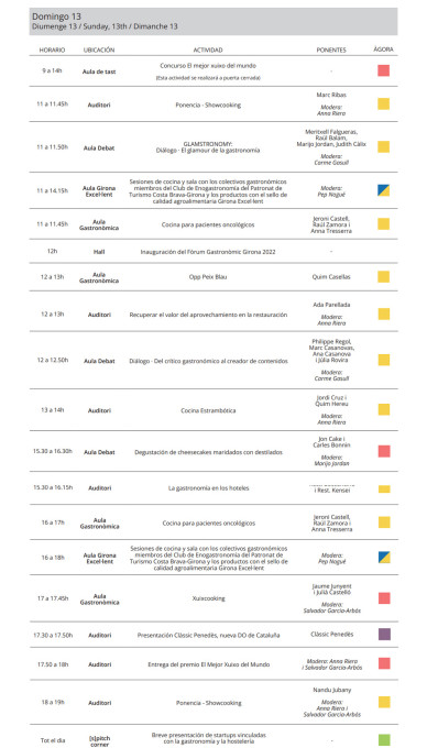 A continuación os dejamos con el programa del Fórum Gastronómico de Girona 2022, en el que podréis ver todas las actividades que se desarrollarán durante las tres jornadas, los horarios y los protagonistas. Para ver el programa a pantalla completa, simplemente tenéis que pulsar sobre las imágenes dos veces (no consecutivas).