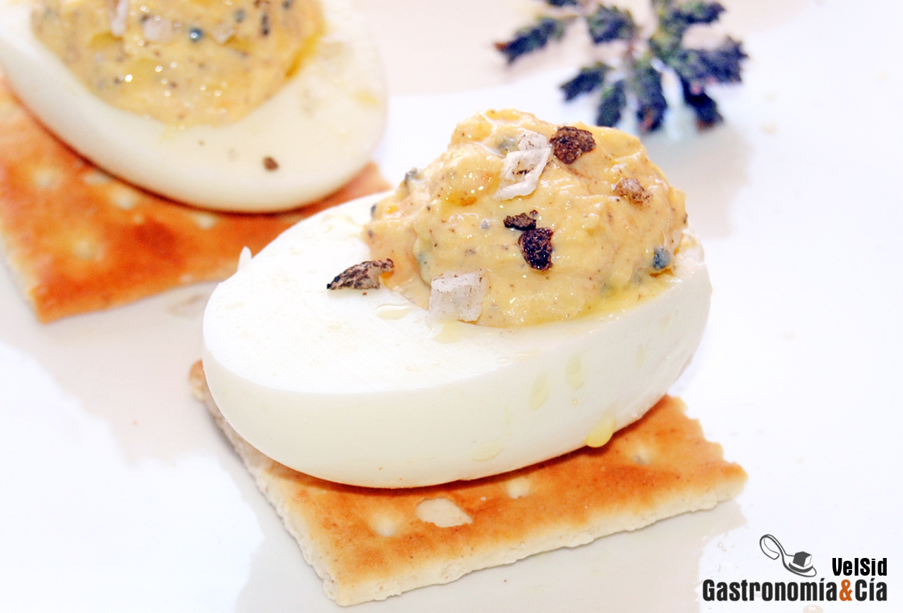 Huevos rellenos con queso y trufa