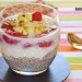 Bol de queso fresco con albaricoques, cerezas y semilla