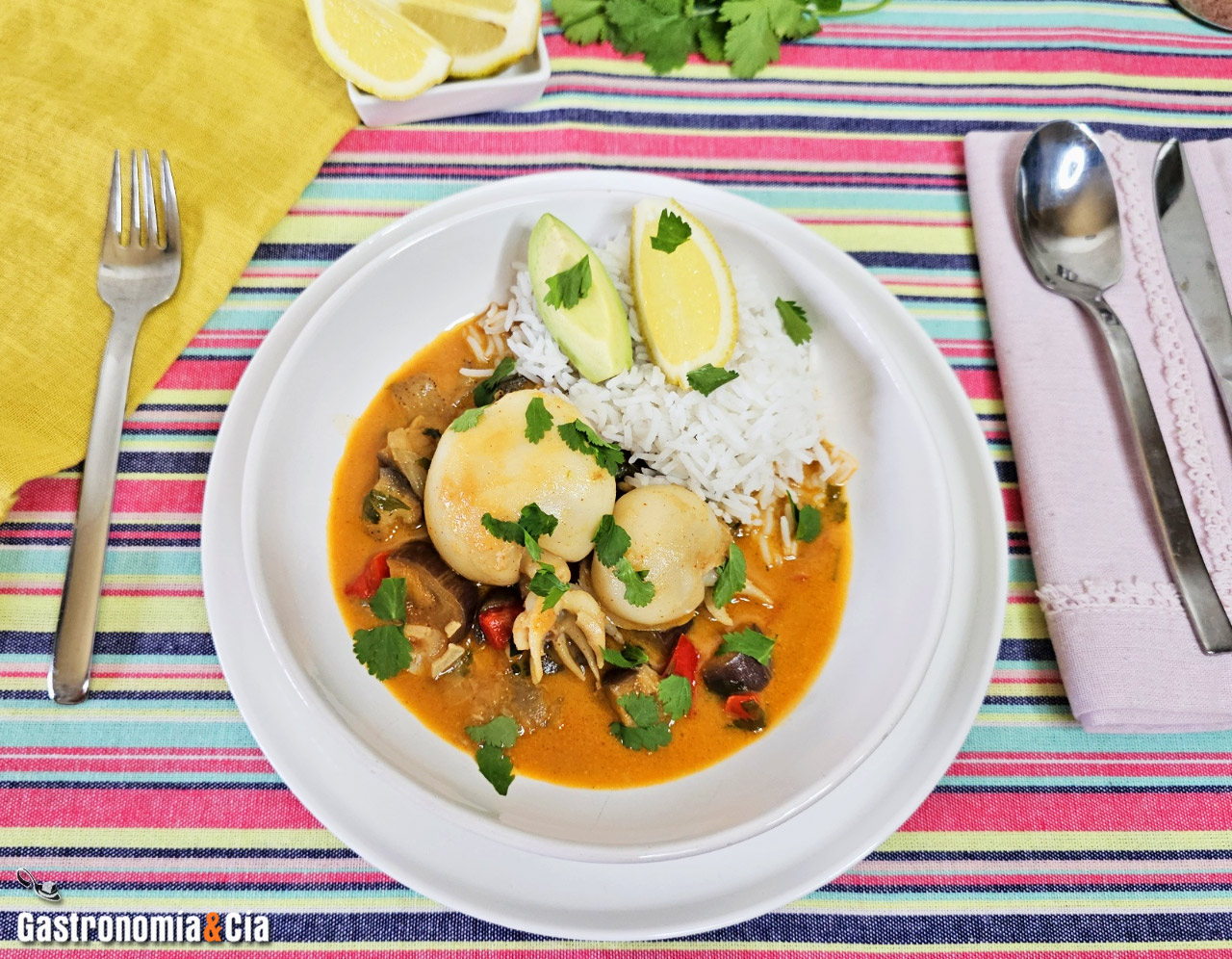 Receta de sepia y berenjena con salsa de coco