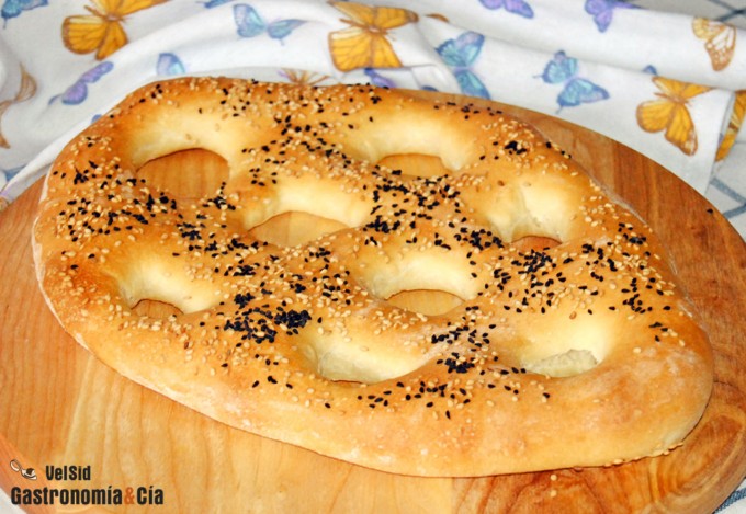 Tenemos la receta de Fougasse que se ha convertido en clásica y habitual en nuestra cocina los fines de semana, este pan tradicional de la Provenza, que como ya os comentamos, se engloba dentro de los panes planos y del estilo de las chapatas italianas, tiene una corteza crujiente y una miga muy alveolada. Pero de vez en cuando variamos la fórmula de la masa y elaboramos variantes como esta Fougasse con aceite de oliva, sésamo y neguilla.