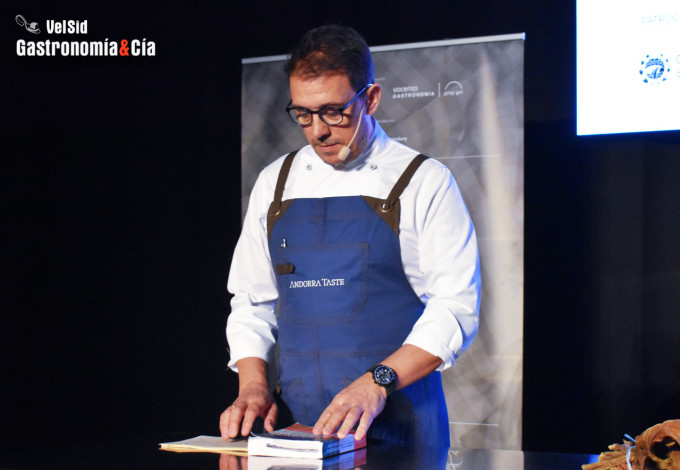 La trucha andorrana también está en la carta del restaurante Ibaya, y podemos recomendaros que la pidáis si tenéis oportunidad porque la pudimos probar y es un lujo para el paladar, praliné de trucha, almendra tostada, trucha curada, grasa de jamón ibérico, consomé de jamón… no os vamos a decir nada más por aquello de no hacer spoiler, por si tenéis pensado ir a Andorra. La ponencia sobre la cocina de alta montaña de Francis Paniego fue muy nutritiva, generadora de reflexiones, inspiradora y cargada de ideas. Y hay una de la que queremos que todos los cocineros tomen nota, es la que luce en el titular: La falta de producto no debe ser una excusa para no cocinar el territorio.