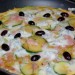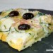 Cuando el huevo esté casi cuajado, incorpora el queso gorgonzola desmenuzado y las aceitunas, vuelve a tapar y deja que termine de cuajar. También puedes terminar la frittata de calabacín gratinándola en el horno.