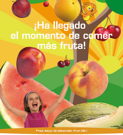 Fruta, mejor de temporada ¡A por ella! es el nombre de la campaña que ya ha puesto en marcha el Ministerio de Medio Ambiente y Medio Rural y Marino (MARM) con el apoyo de la Agencia Española de Seguridad Alimentaria y Nutrición (AESAN), con el fin de fomentar una alimentación llena de beneficios para nuestra salud a través de la fruta de temporada.