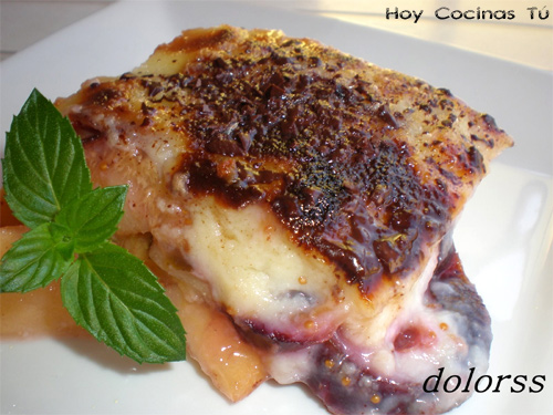 Dolorss del Blog de Cuina nos ha enviado este sugerente postre de Frutas gratinadas que además de abrirnos el apetito sólo de ver las fotos, nos ha solucionado la duda sobre qué prepararnos para terminar la crema pastelera que preparamos ayer.