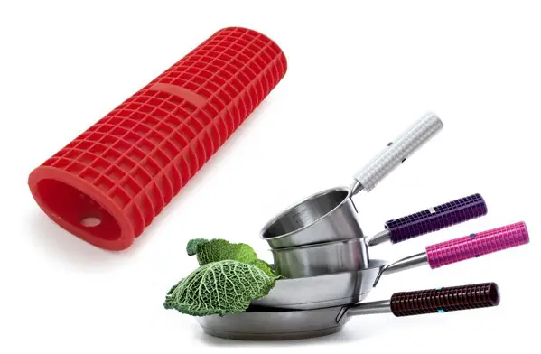 Hace más de un año conocíamos la existencia de los Salva asas y salva mangos de neopreno de Ibili, aunque tenemos más afinidad con las pinzas protectoras de silicona que podemos utilizar con más recipientes de cocción, tanto a fuego directo como en el horno, por ejemplo para las bandejas o fuentes de distintos materiales. Así que continuando con la ‘afición’ de la silicona en el mundo de la cocina, su durabilidad, versatilidad y buen precio, encontramos este accesorio de Silicone Zone, la funda para mangos de cazos y sartenes (Grid Pot Handle).