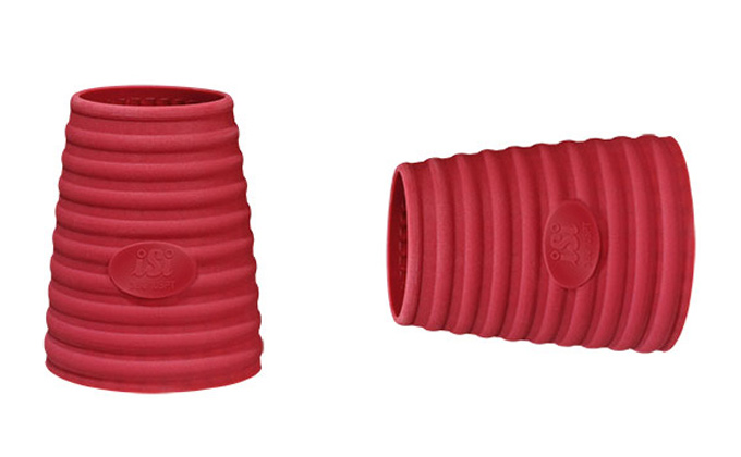 En la foto podéis ver que se trata de una funda que se ajusta a los sifones iSi, hay dos tamaños, uno para el sifón de 0’5 litros y otro para el sifón de 1 litro. Esta funda protectora para sifón de espumas está fabricada en silicona, por lo que se puede lavar en el lavavajillas, introducir en el frigorífico o en un baño maría, que son los lugares en los que se suele poner el sifón para mantener la preparación fría o caliente.