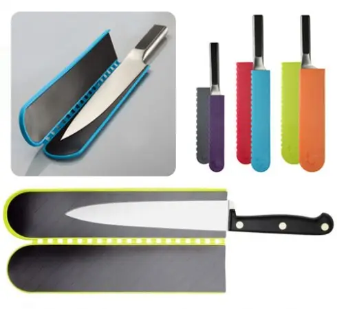 Las fundas para cuchillos protegerán las hojas de nuestros cuchillos más preciados, quedando la zona del corte libre de riesgos de perder su filo al guardarlo en el cajón con el resto de utensilios de corte u otros accesorios. Además, con ello se evitarán posibles accidentes, que las afiladas hojas lastimen nuestras manos cuando de forma descuidada vayamos a coger un cuchillo.