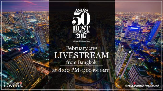 El próximo martes 21 de febrero tendrá lugar la presentación de Asia’s 50 Best Restaurants 2017 en Bangkok, como podéis ver en la imagen sobre estas líneas, será a las 08:00 pm, hora local, es decir, a las 02:00 h. si hablamos de la hora española. Es interesante conocer este dato en el caso de querer seguir la gala de presentación de la lista de los 50 mejores restaurantes de Asia 2017 en directo, desde la comodidad de vuestro sofá.