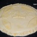 En el primer caso, pinta primero la tarta con huevo batido y después coloca los adornos de hojaldre, vuelve a pintar y haz dibujos con la punta de un cuchillo, sobre todo sin llegar a cortar. Sin adornos de hojaldre puedes dibujar la tarta como prefieras, un enrejado, unas hojas, una corona…