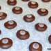 Haz bolitas con todas las porciones y después aplánalas ligeramente, colocándolas en la bandeja del horno cubierta con papel vegetal. Para terminar, coloca un disco de chocolate en el centro, presionándolo ligeramente.