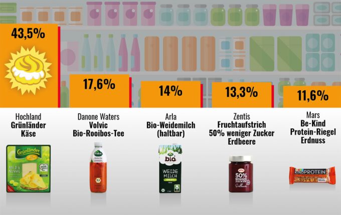 Los resultados de las votaciones son los siguientes, el queso de Hochland recibió 28.443 votos, lo que supone un 43’5% del total, en segundo lugar se ha clasificado el té Rooibos orgánico de Danone Waters con 11.527 votos (17’6%), el tercer clasificado es la leche ecológica de Arla con 9.193 votos (14%), en cuarto lugar se clasifica la mermelada de fresa de Zentis con 9.709 votos (13’3%), y en quinto lugar se clasifica la barrita energética de Mars con 7.584 votos (11’6%).
