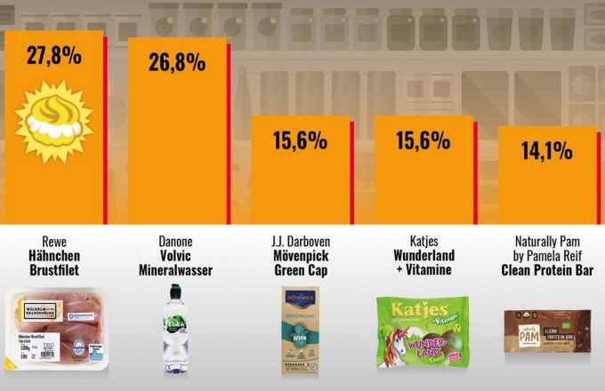 Pues bien, se acaba de anunciar al ganador del Premio a la Mentira Publicitaria más Insolente del Año 2021 y según el resultado de las votaciones online en las que han participado más de 63.000 consumidores, las pechugas de pollo fileteadas Rewe son las merecedoras de este premio al acaparar el 27’8% de los votos, le sigue de cerca el agua mineral Volvic con un 26’8% de los votos, las cápsulas de café de Mövenpick con un 15’6%, con el mismo porcentaje las gominolas de frutas de Katjes y finalmente las barritas de proteínas de Pamela Reif con un 14’1% de los votos.