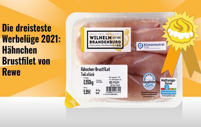Recordemos que las pechugas de pollo fileteadas Rewe se presentan como un producto climáticamente neutro y se acredita con certificados de la huella de carbono que Foodwatch apunta que no corresponden con la realidad. La marca pretende mostrar que su carne de pollo es más respetuosa con el medio ambiente que la que comercializan sus competidores, para ello financia a través de un proyecto denominado Tambopata, la protección de los bosques de Perú a fin de alcanzar la neutralidad climática. Foodwatch denunció en su momento que el proyecto Tambopata no protege nada, ya que la deforestación no ha disminuido, pero su participación en él facilita que pueda utilizar sellos que muestran la reducción de la huella de CO2.