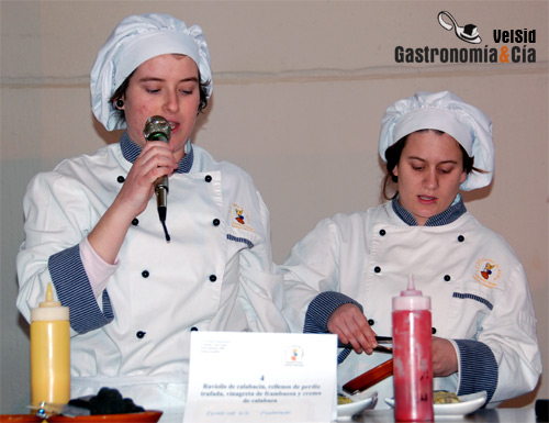 Como os mostramos en el post anterior de este evento, ocho eran los participantes de la Escuela de Hostelería Costa de Azahar de Castellón, como sucede generalmente, mayoría masculina. Por eso quizá es mayor la sorpresa de los ganadores del concurso, pues los tres platos que lograron seducir los sentidos culinarios del jurado, logrando elevarse con los tres premios otorgados, fueron los creados por las féminas.