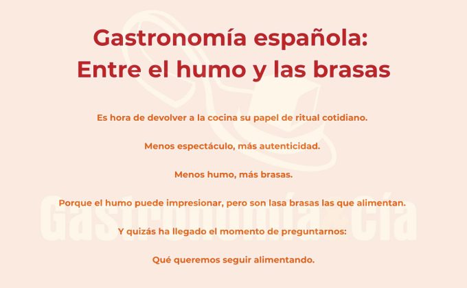 Porque si algo está claro, es que nos encontramos en un punto de inflexión. Y si no aprovechamos esta oportunidad para repensar el rumbo de la gastronomía española, que navega entre el humo y las brasas, podríamos estar hipotecando todo lo que nos costó construir.