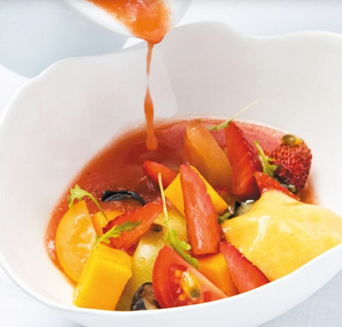 Como en estas fechas lo que más apetece son platos frescos y ligeros, cuantas más ideas tengamos para preparar algo rico, más variado comeremos. Así que para quienes disfrutan empezando la comida con una buena sopa fría, hoy os traemos la receta de Gazpacho de melocotón y fresas de Jordi Cruz, con la que, además, vais a sorprender a vuestros comensales. Como veréis a continuación, es un gazpacho fácil y rápido de hacer, como cualquier otro, pero tiene el toque del chef para poder considerarlo un entrante ideal en una comida o cena de celebración, seguramente tendréis varias este verano.