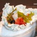 La espuma se monta en dos tandas, entre una y otra sirve la zanahoria en brunoise con un poco de menta, lo que aportará más frescor y textura. A este aperitivo le incorpora el ácido con el aire de mandarina, suave y dulce, y para terminar, inserta una baby zanahoria para ir combinando cucharada de yogur y tubérculo.