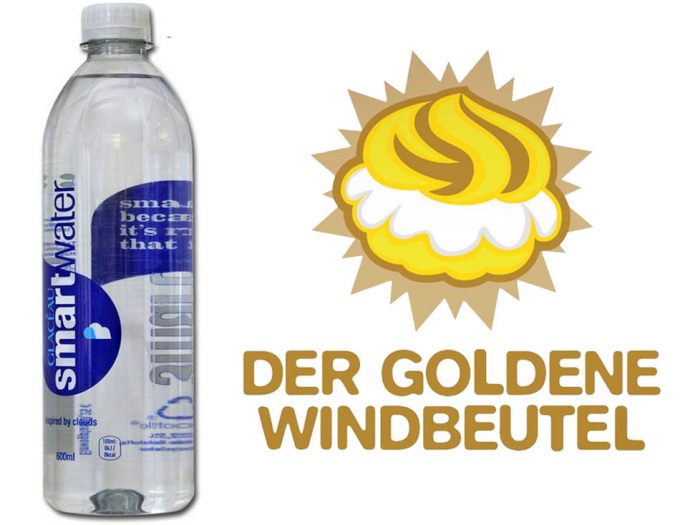 Los participantes en la votación del Premio Goldener Windbeutel 2018 lo han tenido bastante claro, votaron unas 70.000 personas y una tercera parte (30’5%) votó por el agua de Coca Cola como la mentira más insolente del año. Según la directora de la organización de este premio, Coca Cola es número uno en este tipo de argucias cuya finalidad es sacar el dinero a los consumidores, a la compañía se le ha ocurrido un proceso de edición del agua que resulta escandaloso, parece enmarcarse en la ciencia, pero es completamente absurdo. Mucha publicidad y parafernalia en torno a Smartwater para lograr convencer a los consumidores y obtener una gran rentabilidad por un producto que no vale lo que cuesta.