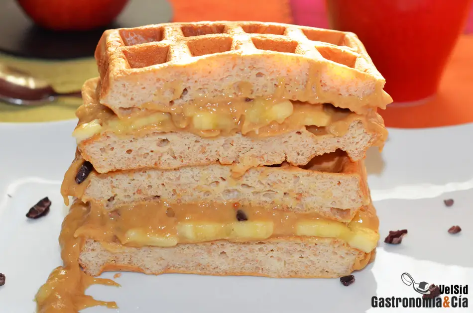 Si no lo sabéis, ya imaginaréis qué es una tartinade, básicamente este término define a una crema de untar que se sirve sobre una tartine (o sobre otros alimentos), y una tartine no es más que una rebanada de pan cubierta con alimentos untables. Pues bien, la combinación de plátano y cacahuete por todos es sabido que es magistral, así que, entre los esponjosos y sabrosos gofres integrales y la crema de untar de plátano y cacahuete, nada puede salir mal.