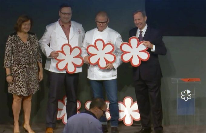 A través de YouTube, hemos podido ver en directo la presentación de las nuevas estrellas Michelin de la Guía Michelin de Gran Bretaña e Irlanda 2017, guía que como ya sabemos, recomienda los establecimientos de Inglaterra, Irlanda, Escocia y Gales, es decir, las naciones constitutivas del Reino Unido. Nos ha sorprendido ver que los chefs de los restaurantes que reciben su primera estrella Michelin acuden al evento y reciben, de manos de Michael Ellis, director mundial de Guía Michelin, una chaquetilla y la correspondiente distinción, algo que no hemos visto en nuestro país (¿quizá este año sea el primero?).