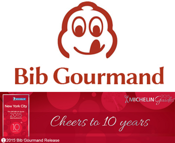 Como antesala de la presentación de la Guía Michelin de Nueva York 2015, se acaba de publicar la lista de Restaurantes Bib Gourmand de esta guía que cumple su décimo aniversario. La publicación de esta lista de restaurantes reconocidos por ofrecer una buena relación calidad/precio es un aperitivo para crear expectación, recordemos además que el distintivo Bib Gourmand ha adquirido gran relevancia y es agradecido por los establecimientos a los que se concede.