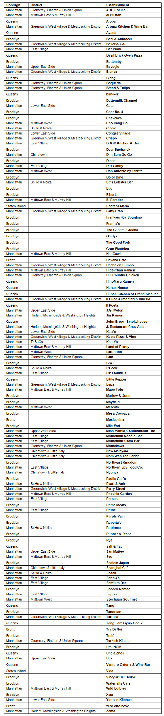 Este año la lista de Restaurantes Bib Gourmand de Nueva York no se ha incrementado como en ediciones anteriores, el año pasado recibieron este distintivo 138 establecimientos, este año se ha reducido a 126. Como es habitual, en la lista encontramos restaurantes de los cinco condados, Brooklyn, Manhattan, Queens, Bronx y Staten Island, a continuación os mostramos el listado.
