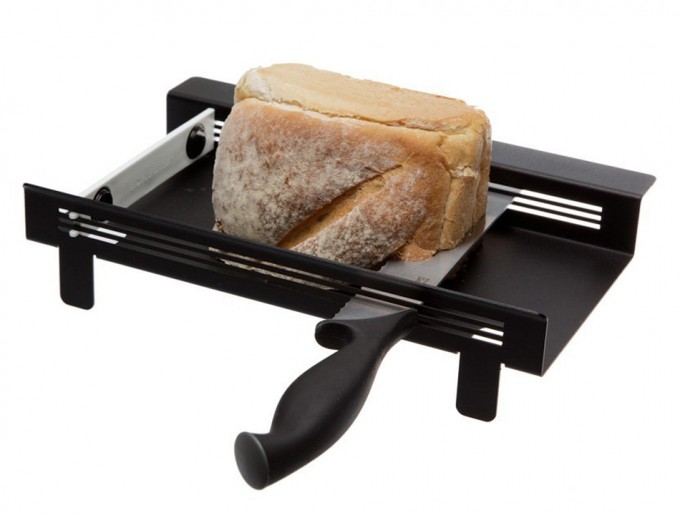 Por alguna razón teníamos claro que existiría algún utensilio pensado para cortar el pan cuando va a ser utilizado para hacer un bocadillo, hay tantos accesorios de cocina útiles e inútiles, que este no podía faltar. Véase un ejemplo del que nos parece inútil en relación al pan (aunque respetamos que haya personas que lo encuentren práctico), y del que podríamos pensar que es útil no hemos hablado, ni lo tenemos, es el rebanador de pan de molde, y nos parece bueno básicamente porque hacer uso de dicho utensilio representa disfrutar del pan de molde casero.